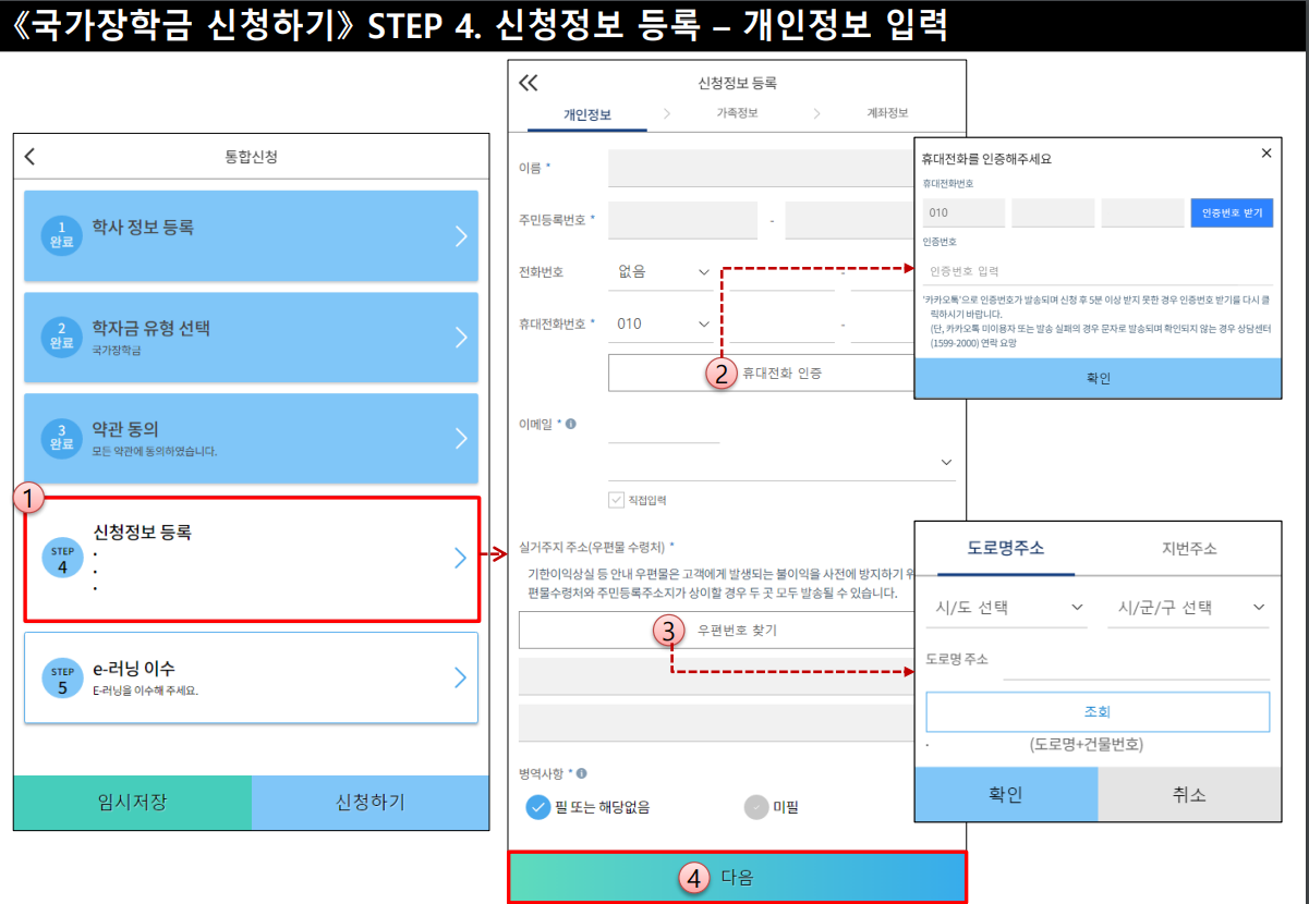| 반드시 본인 명의로 신청 -수혜받을 대학생 본인이 정확한 대학 및 가족 정보를 입력하여 신청 완료 할것 |