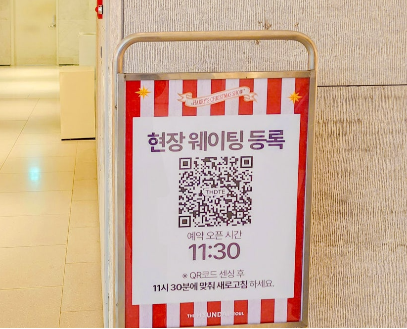 ✅ 현장예약방법: 더 현대 2,3,4층 에스컬레이터 앞 비치된 QR 코드 스캔한 후, 예매 오픈 시 웨이팅 등록하기