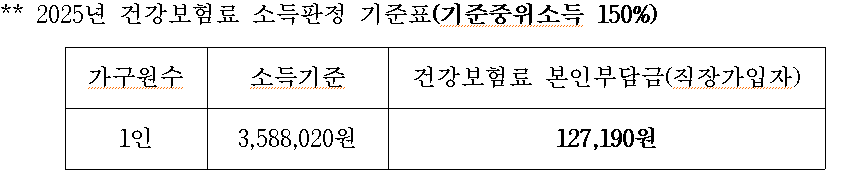 | 청년요건 | 1.광주소재 중소기업에 정규직으로 재직중이어야 함 2.광주 광역시에 거주 3.만19세~39세(2005년 3월3일생~1985년 3월 3일생) 4.중위소득 150% 이하 청년 ※ (2025년 기준 : 최근 6개월 평균 건강보험료 본인부담금이 127,190원 이하인 청년 , 재적기간 6개월 미만인 경우 근로계약서상 임금으로 판단함, 평균 3,588,020 원이하) |